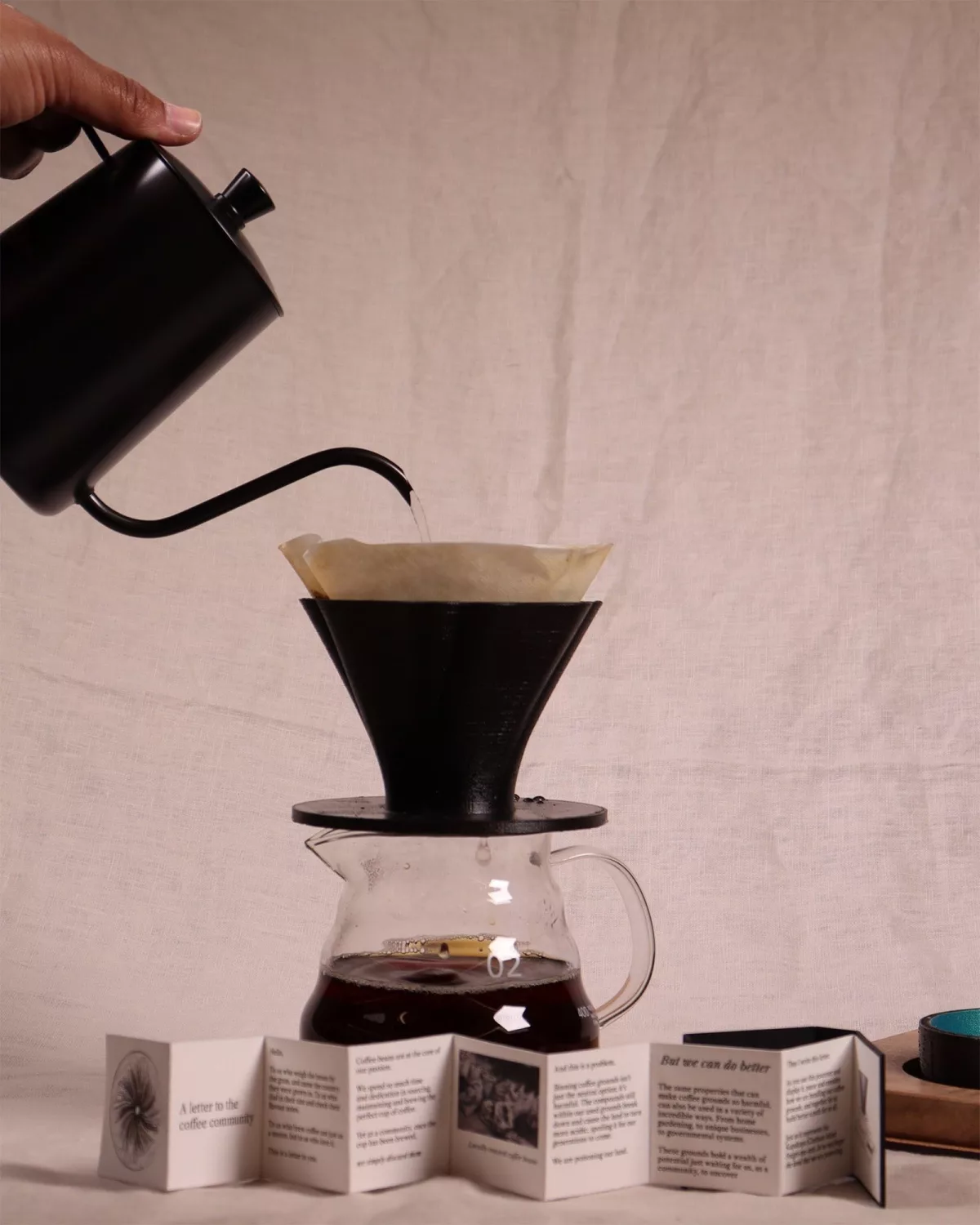 This project seeks to intervene in this space, to bring awareness to the problem of what coffee grounds really are and to help point out in what directions we could head in as a community to a better world.
