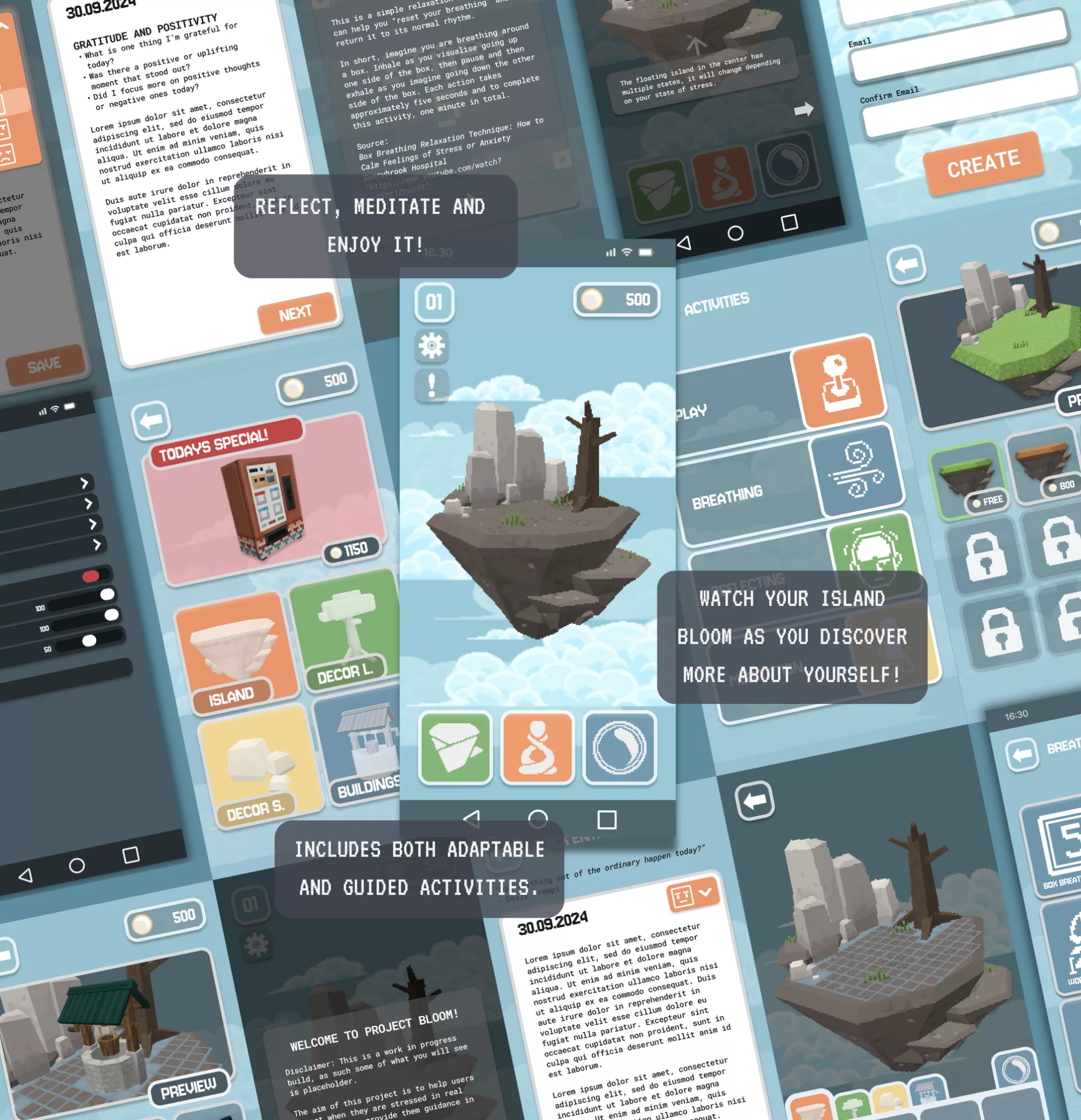 The practical design outcome, Bloom, is a mobile app designed to be integrated with smartwatches, using their built-in sensors to improve stress detection. By tracking real-time bio-signals, Bloom identifies when the user is distressed and will offer a range of alleviation methods with a gamified approach to encourage users to practise stress-relief techniques consistently and effectively.