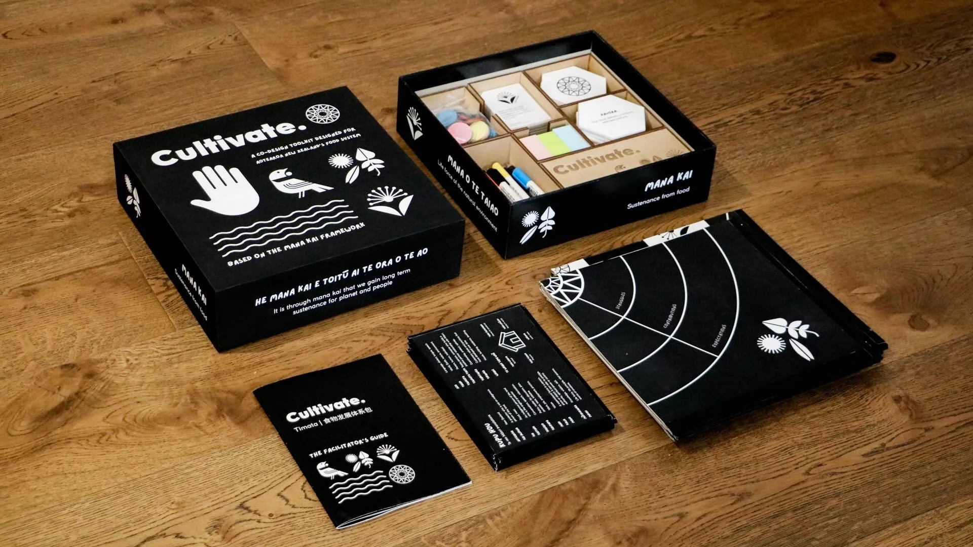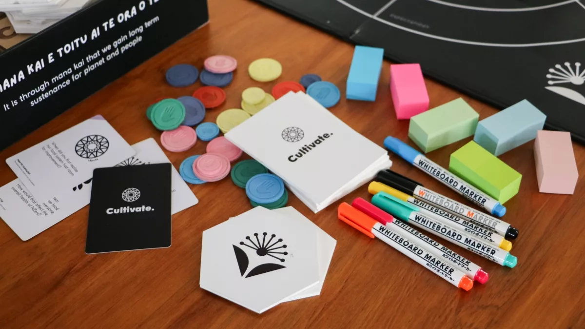 Cultivate is a co-design toolkit designed to facilitate collaboration and alignment amongst key actors in Aotearoa New Zealand’s food system. It aims to empower key decision makers with the insights necessary to advance our food system alongside local communities and in alignment with te Tiriti. Cultivate draws upon principles of co-design, gamification and “serious” play to create a level playing field for knowledge sharing and collaboration to take place. The toolkit includes four tools designed to encourage key actors to engage in kōrero, consider the people impacted, understand each other’s value and practise long term thinking.