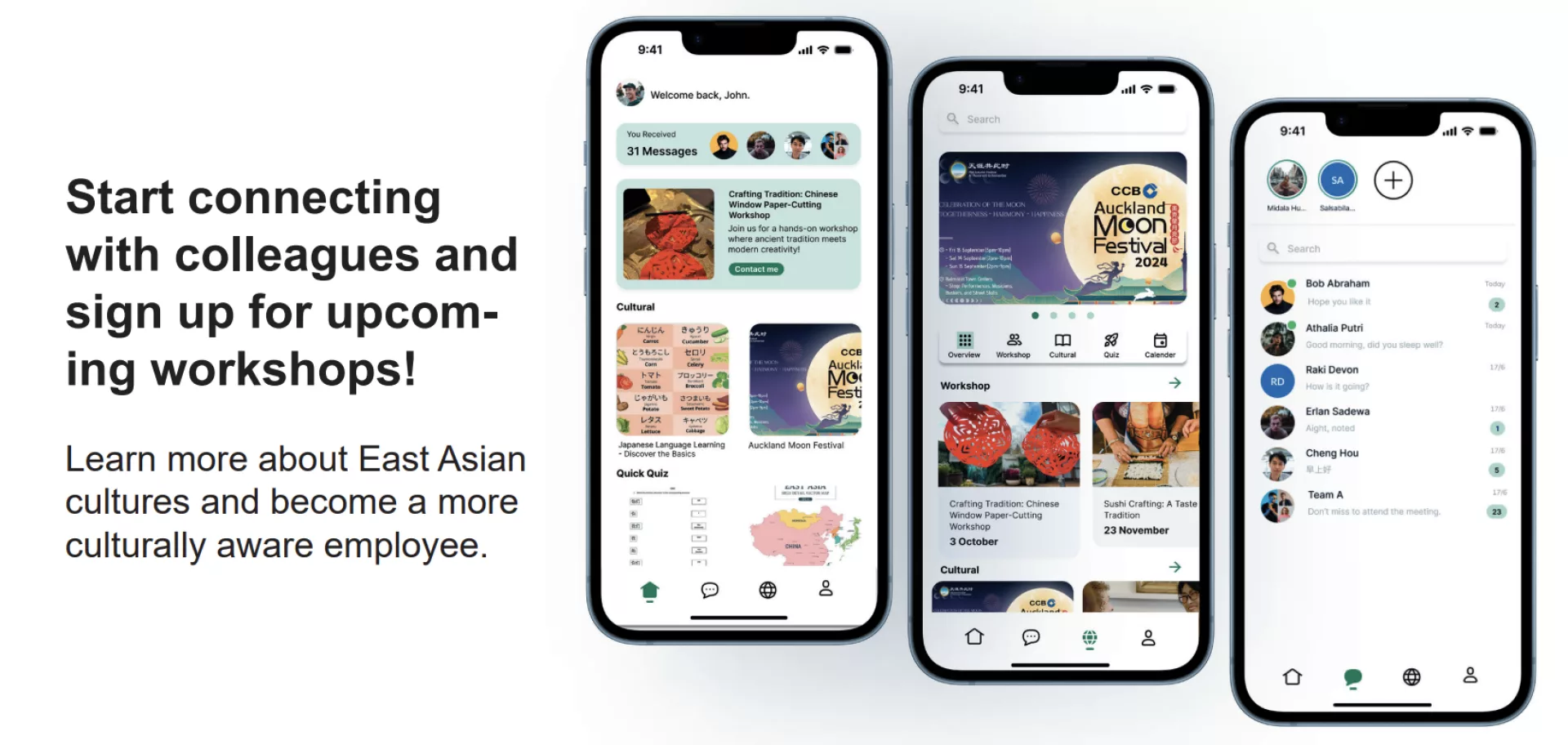 This design effectively promotes cultural inclusion in the workplace by providing tools for cultural exchange, learning, and connection. In addition to supporting non-East Asian employees in better understanding and integrating into the workplace's cultural diversity, the objective is to promote an environment that is inclusive and respectful to East Asian employees.