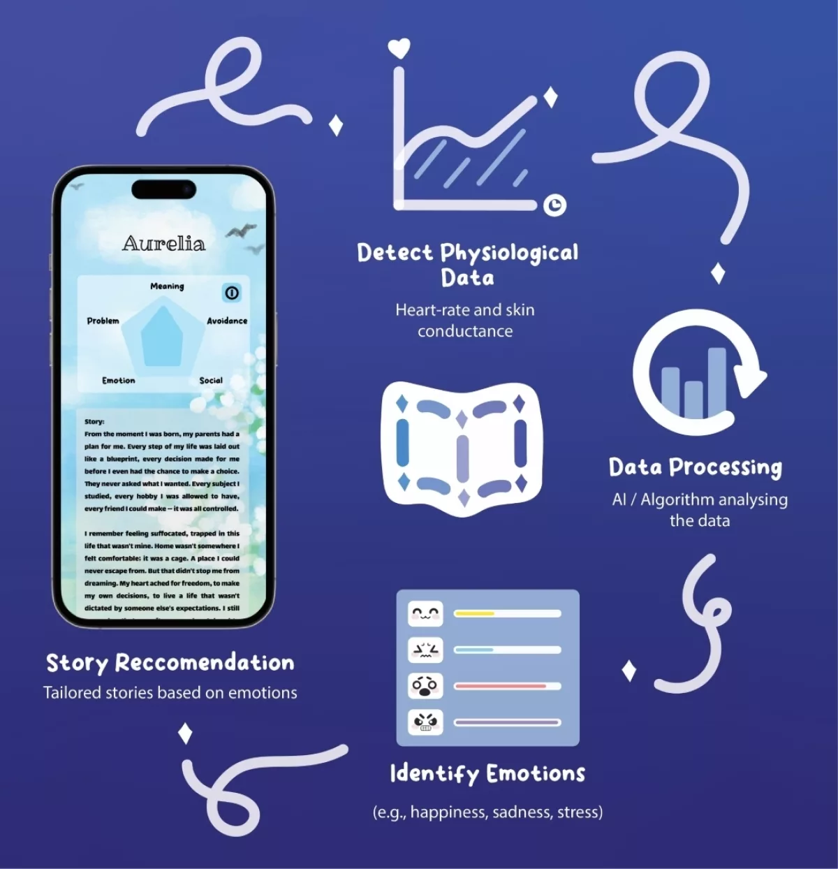 This project aims to develop a digital tool that enhances the mental well-being of young people by providing real-time emotional support through emotion recognition and digital phenotyping technologies. This tool seeks to help users recognise their emotional states and offer tailored stories and coping strategies to relieve stress, fostering emotional resilience and healthier coping mechanisms.