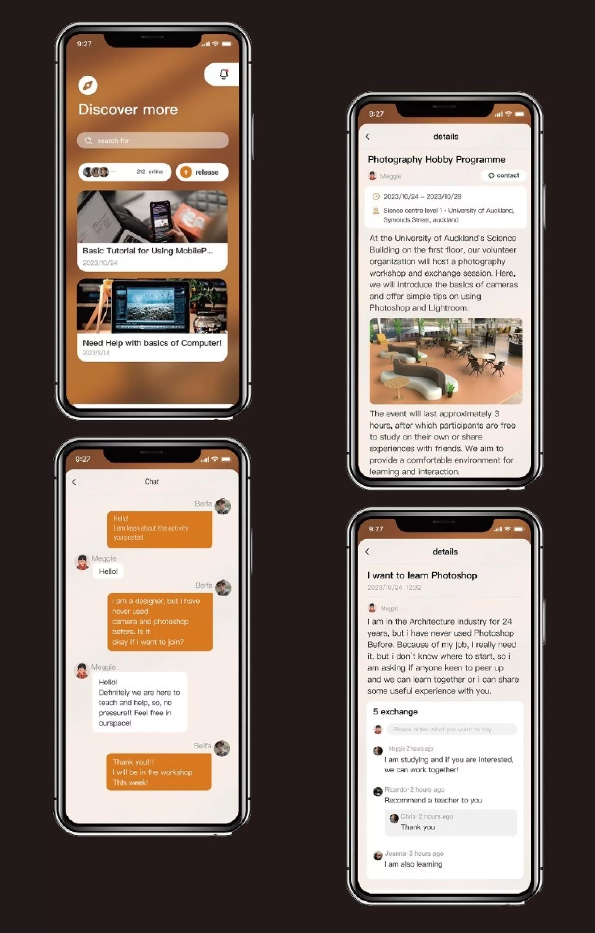 Take Steve, a 68-year-old retired interior designer who’s unfamiliar with modern design software. EraBridge's app and space will provide him with the courses he needs to learn the latest software. Through the app, he can connect with a buddy, collaborate with young designers, and refresh his professional skills, allowing him to re-enter the industry he loves and continue his career.