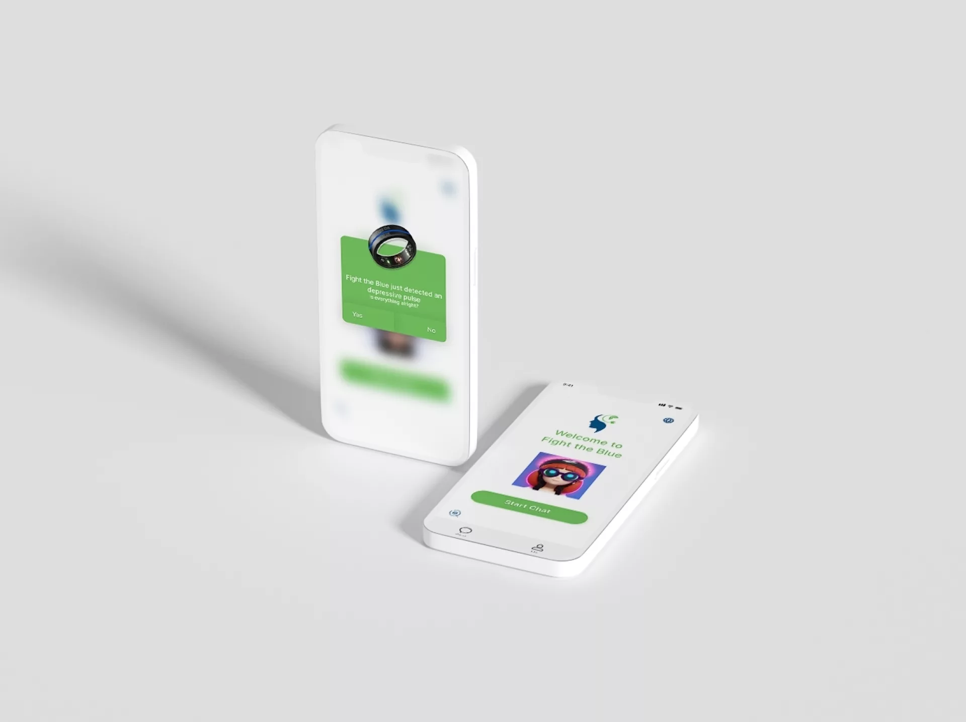 At the core of "Fight the Blue" is a smart ring, a sleek and unobtrusive device equipped with an Optical Heart Rate sensor. This sensor, coupled with advanced algorithms, detects specific heart rate patterns associated with depression. Paired with an intuitive mobile app, the smart ring offers timely, 24/7 emotional support to users.
