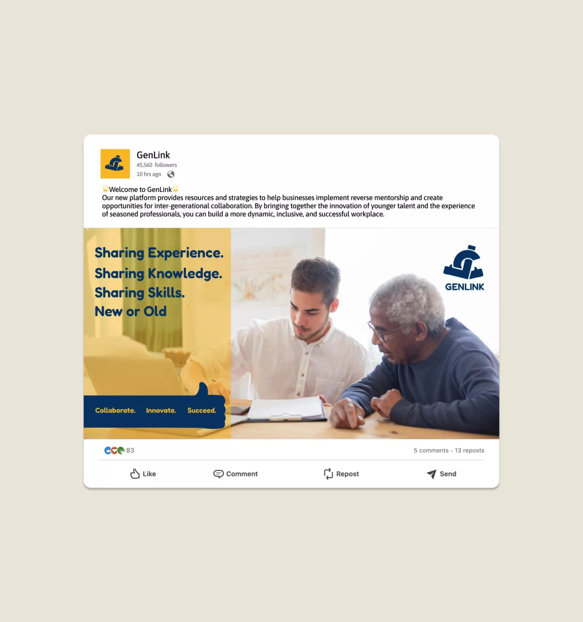GenLink is an online resource that advocates for implementing Intergenerational Collaboration through internships. This resource makes information on this subject more accessible to organisations and centralises it into one place.