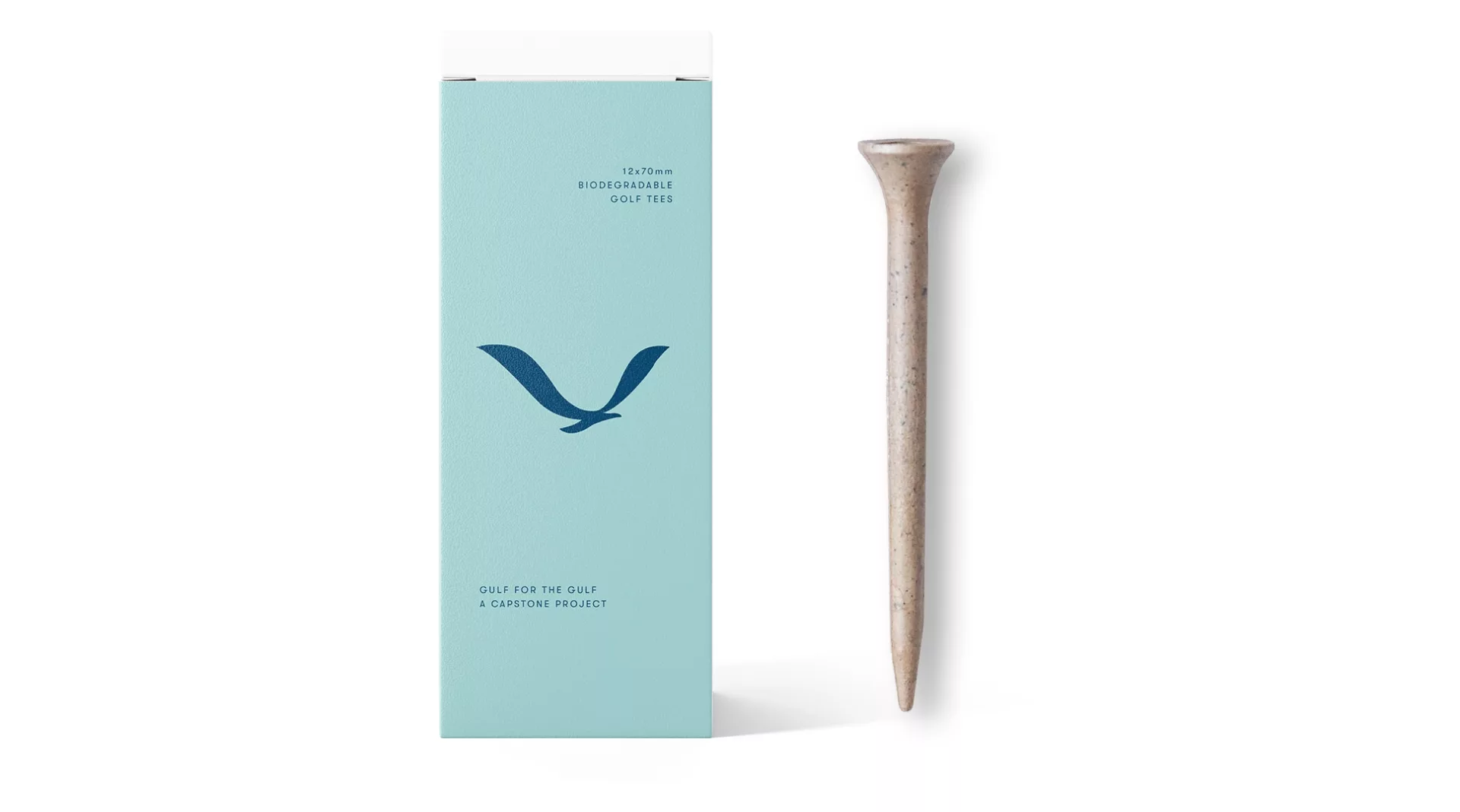 Golf for the Gulf focused on how golf tees, a potentially single-use product, could be made in such a way as to reduce the damaging impacts of tee waste. Thousands of tees currently saturate the golf market, but only some consider the environment. This project explored bio-composite materials to provide a biodegradable solution that is safe for wildlife to consume. Closing the recycling loop was a priority, so used-coffee grounds were chosen as the base material. The used-coffee grounds combined with vegetable oil, sugar cane and glycerin made for a functional yet sustainable material.