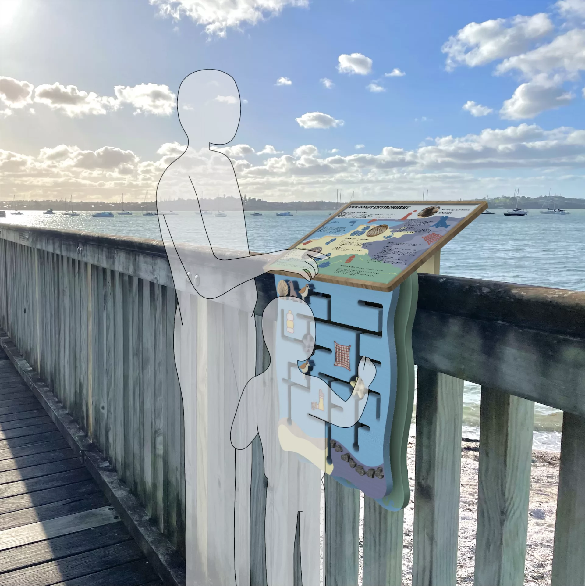 IGS Board is placed on the fence of coastal walking trails. It allows people to feel the wind, air and sound from the natural environment directly.