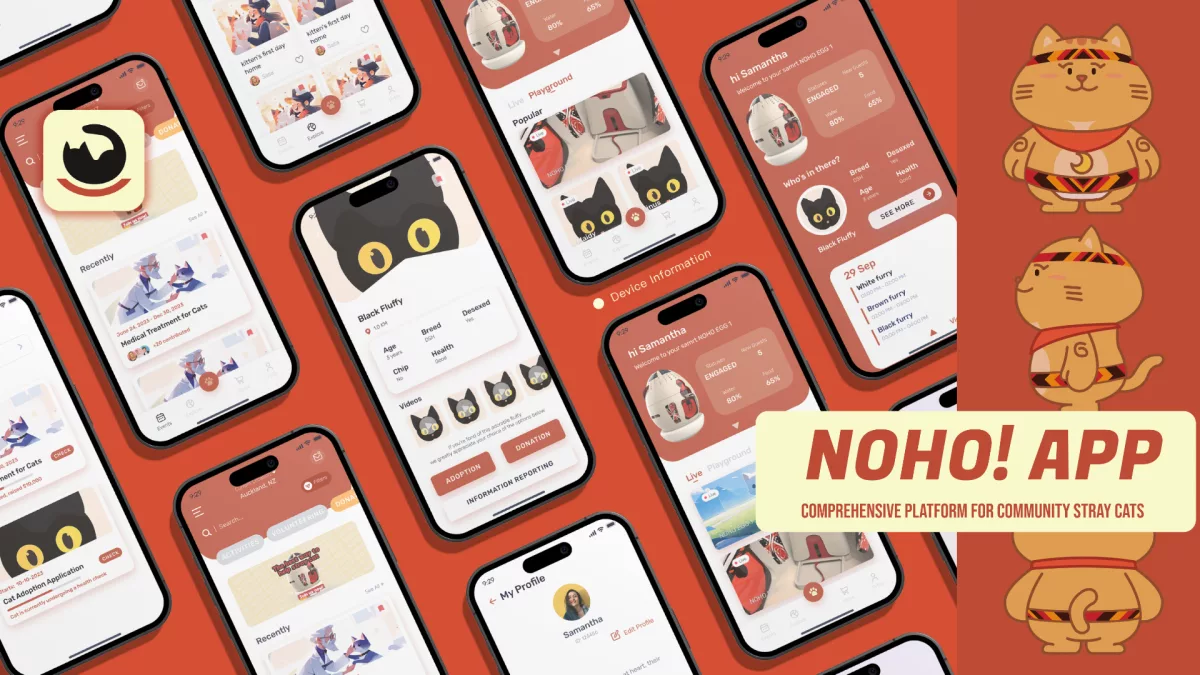 The NOHO! app serves as a centralised hub for stray cat information, aiming to enhance neutering and adoption efforts. It provides users with real-time updates, allowing them to monitor the health and status of stray cats, engage in adoption processes, make donations, and share live streams. The app also keeps users informed about local stray cat events and provides a platform for sharing experiences and photos, thereby fostering a sense of community among cat lovers.