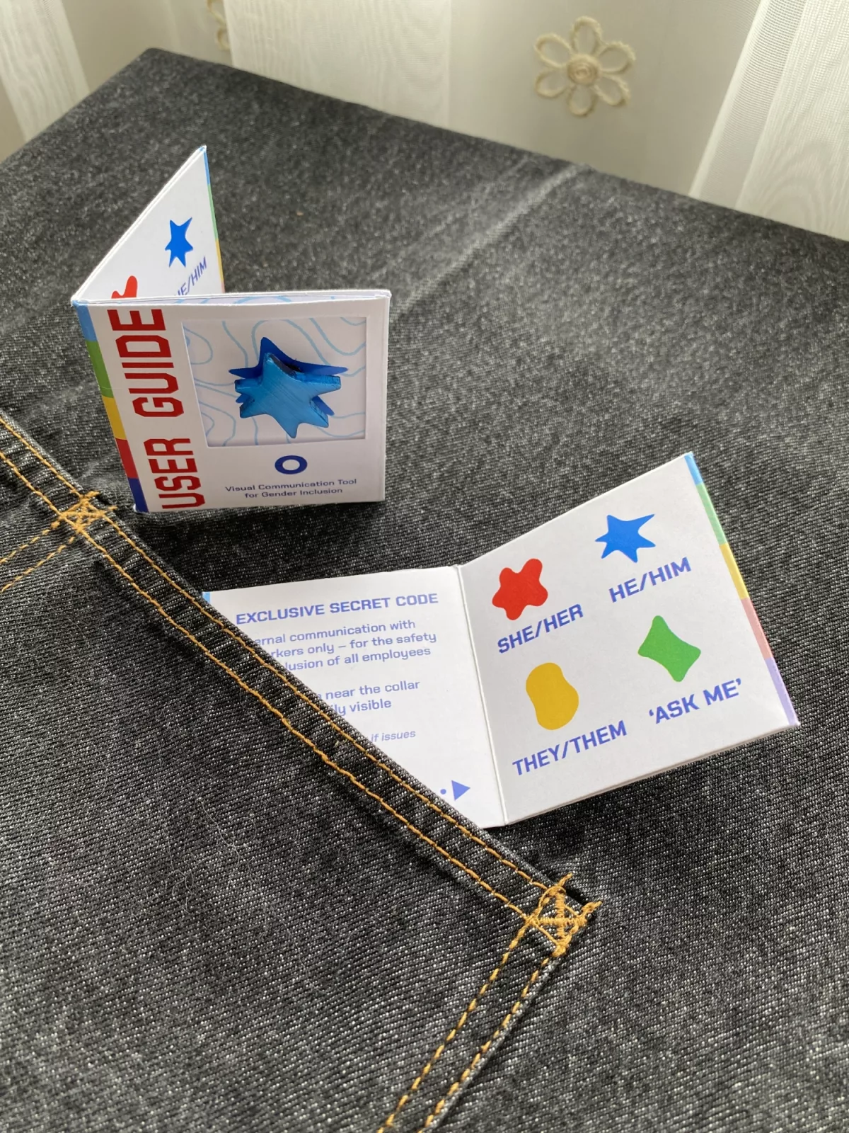 O: Visual Communication Tool for Gender Inclusion is a package of discreet pronoun pins and user guides that foster the active practice of gender-diverse inclusion. These pins work as a secret code between coworkers in customer-facing industries. Reducing the risk of discriminatory action from customers while providing a reference point on each worker’s identity. Each participating workplace will have its own set of pins that reflect its brand and culture. Through these pins’ unique system of internal and exclusive visual codes, coworkers will exercise respect and lead to better teamwork.