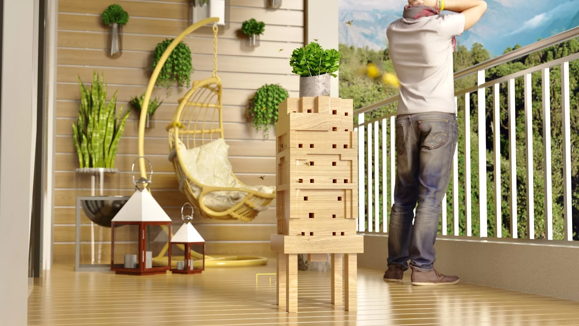 The provided pillar allows you to put it anywhere: the backyard, the balcony, or wherever bees appear.