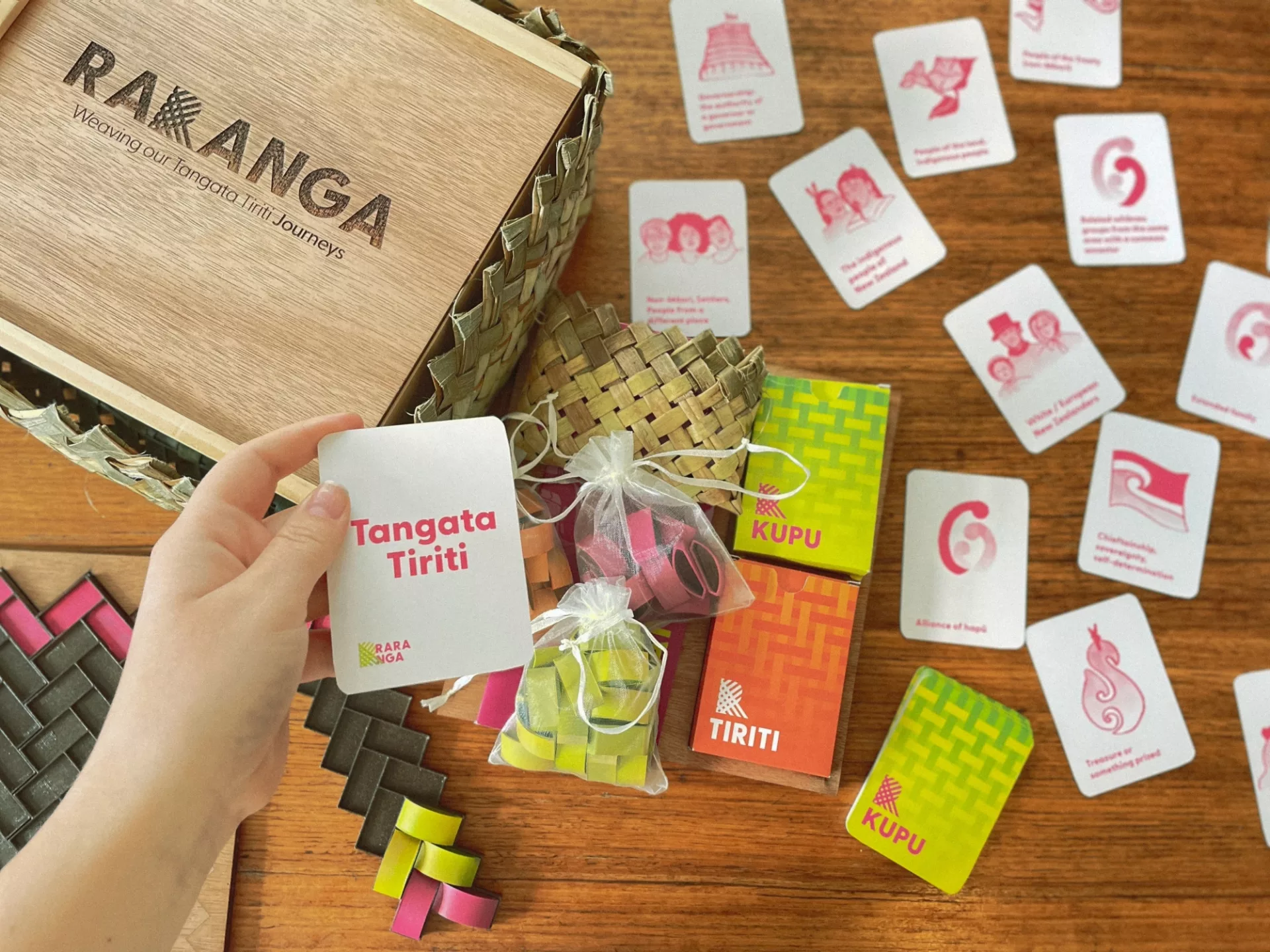 Raranga | Weaving our Tangata Tiriti Journeys is an educational gamified toolkit developed to equip kaimahi with the skills and knowledge to assist them as Tangata Tiriti. The kēmu|game centres learning through collaboration, reflecting the traditional Māori art of Raranga | Weaving. The practice weaves together individual strands of harakeke to create something stronger, symbolising the collective journey towards understanding and embodying Te Tiriti.