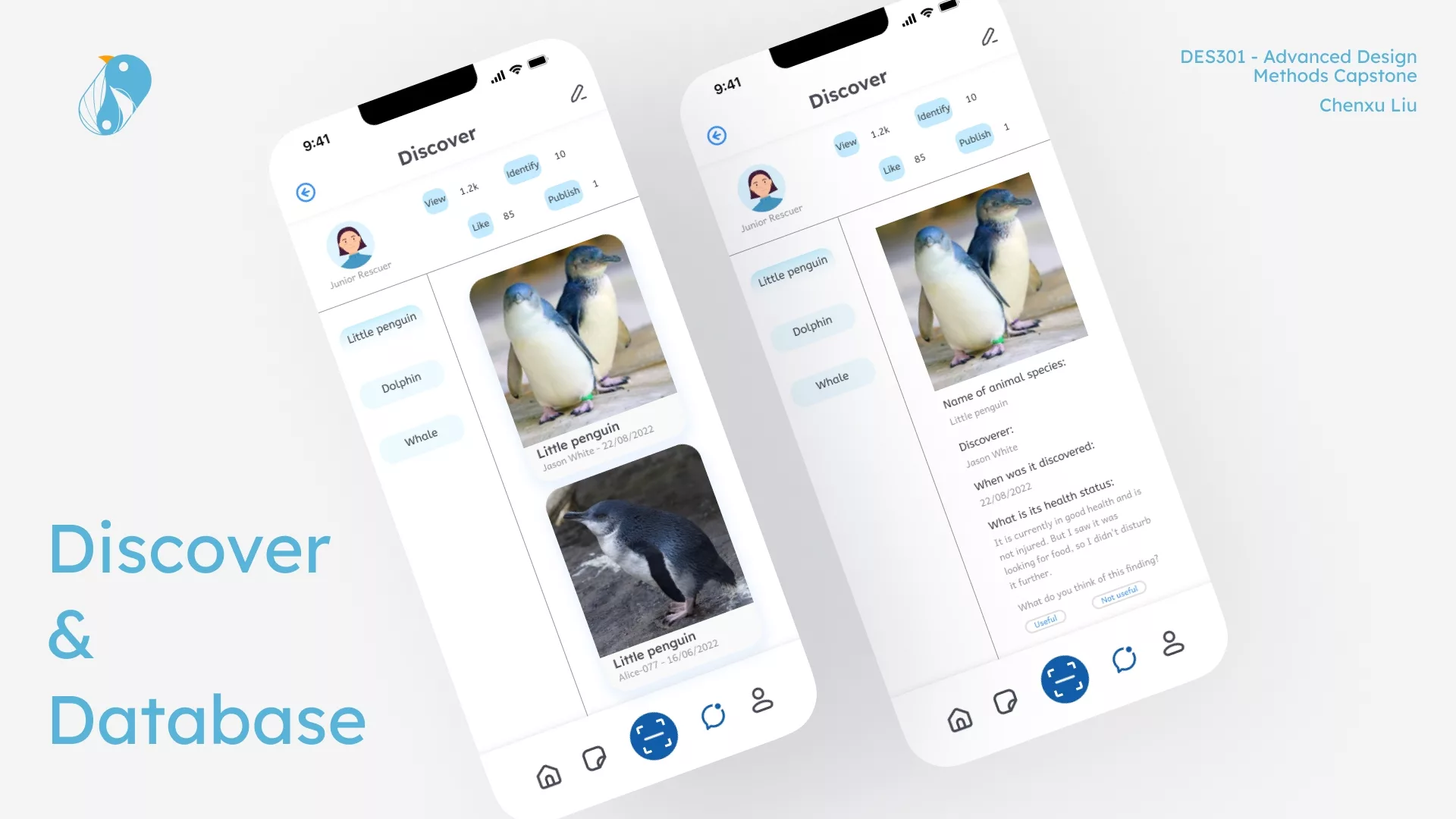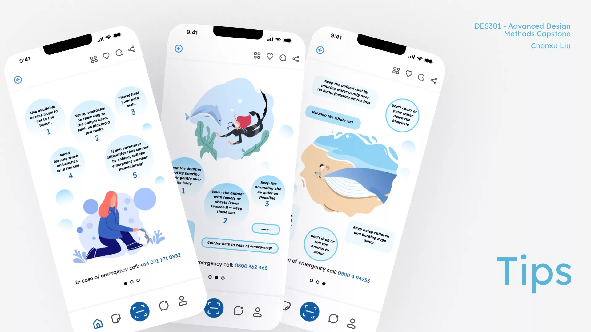 For my design project, I designed an app to help solve as many problems as possible for marine animals living in difficult environments.