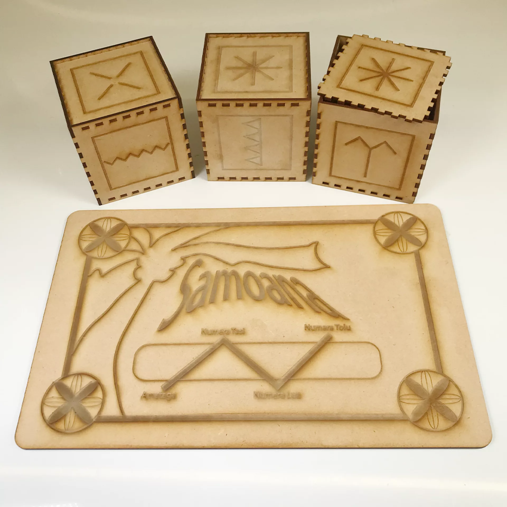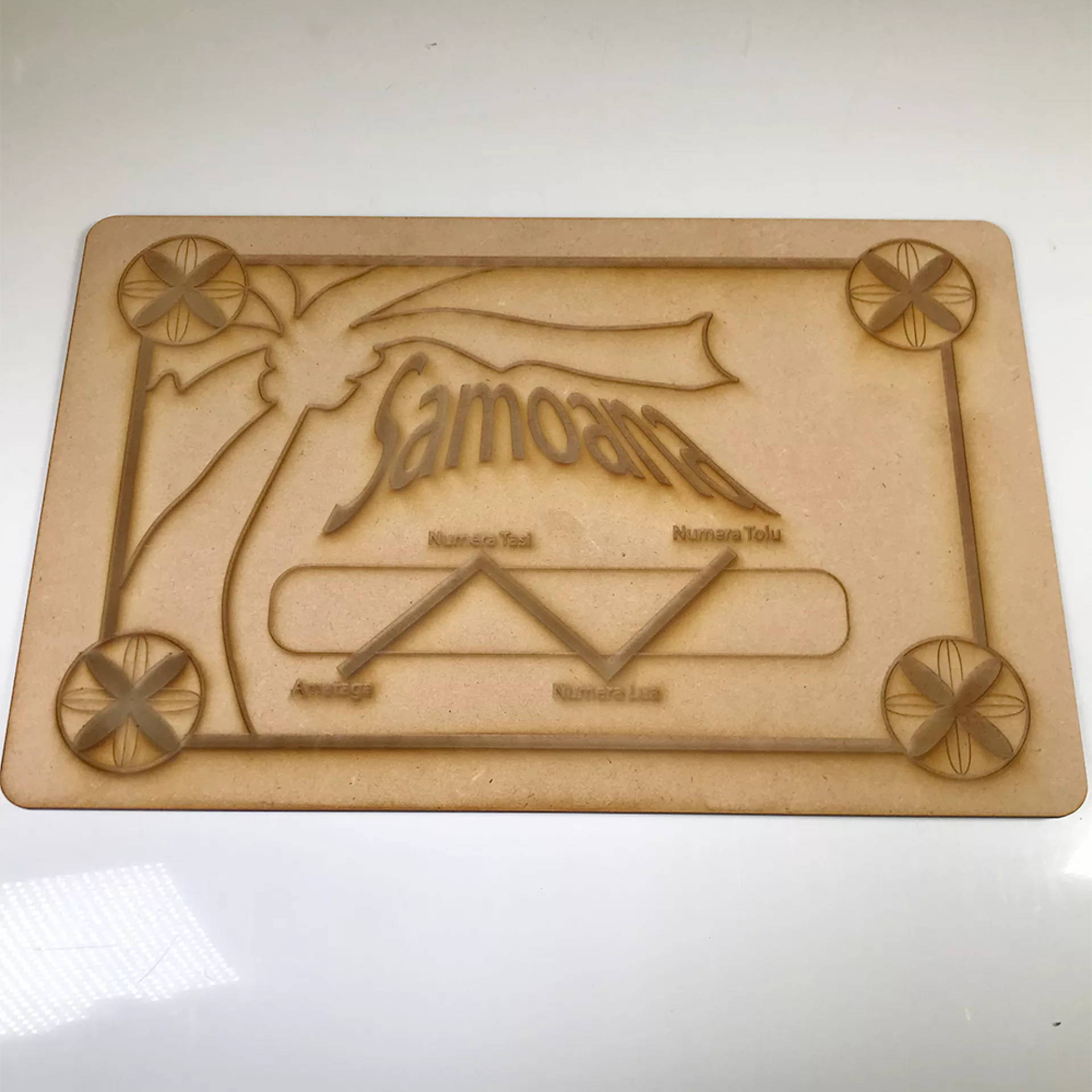 A Samoan-narrated board game created to provide a fun and interactive experience for children aged 8 to 12. The game gives the children tasks to complete in a group setting across three different phases. Each phase incorporates three activities based on indigenous Samoan storytelling through the traditional Samoan "Sasa", traditional Tattoo patterns, and symbols. The result is an interactive and fun cycle where children express themselves and build collaboration and teamwork. The board game will also share insights into indigenous Samoan knowledge throughout the play. The kit consists of a board game, a die, a manual sheet for the participants to refer to - and a rule sheet for the facilitator role.