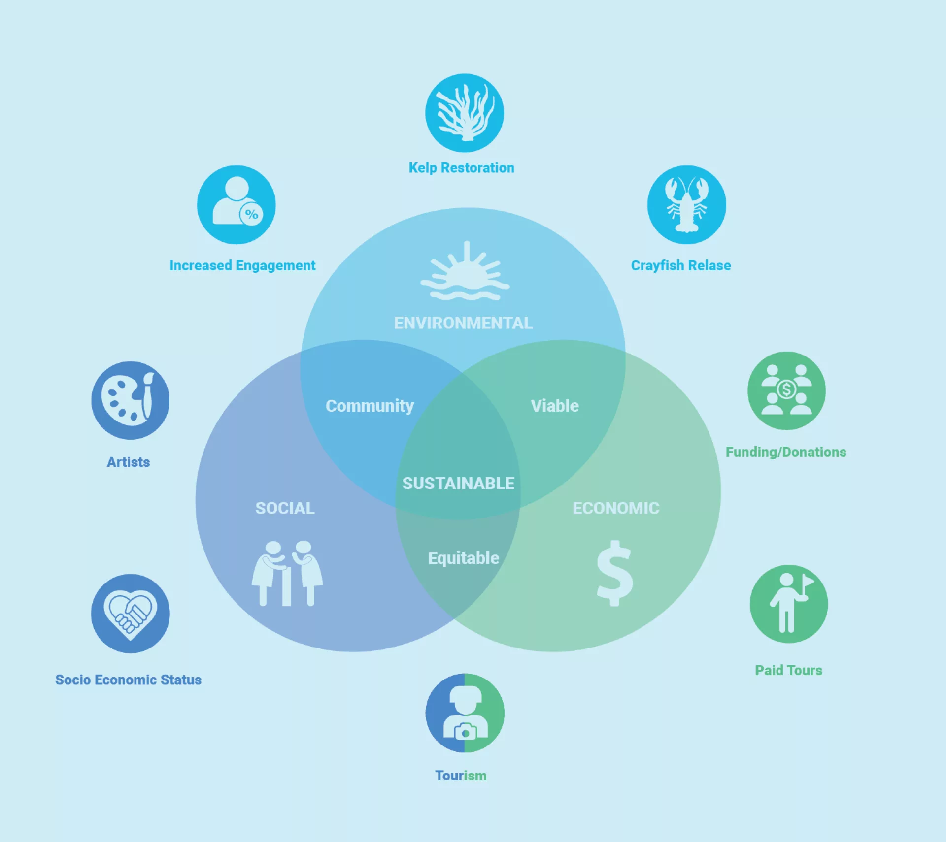 Auckland, New Zealand's marine environment is changing and not for the better, plagued with kina barrens which used to be kelp forests. Sea Jewel combats this problem by promoting kelp forest growth in kina barren areas while also increasing the economic wealth of the site by generating tourism.