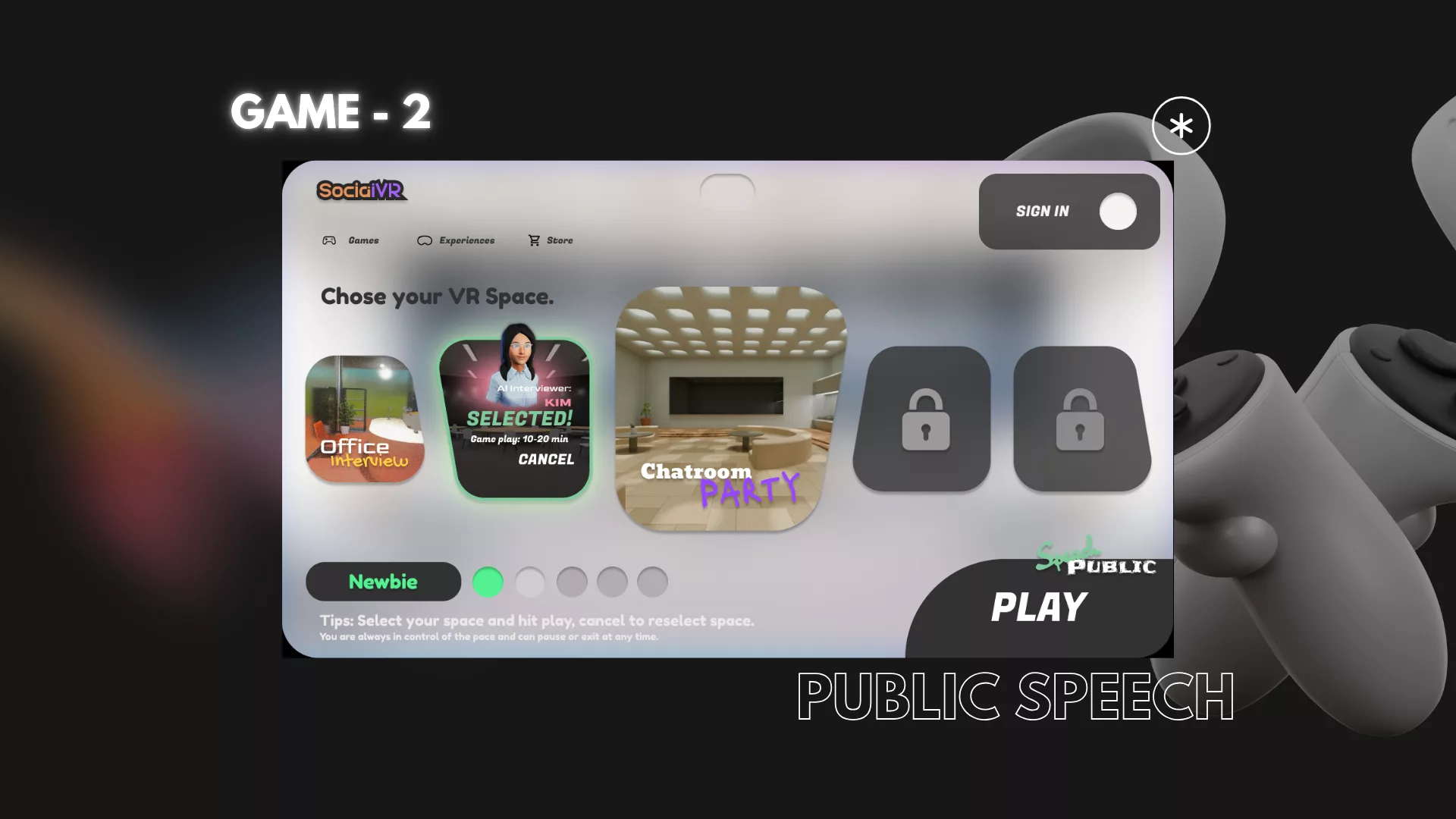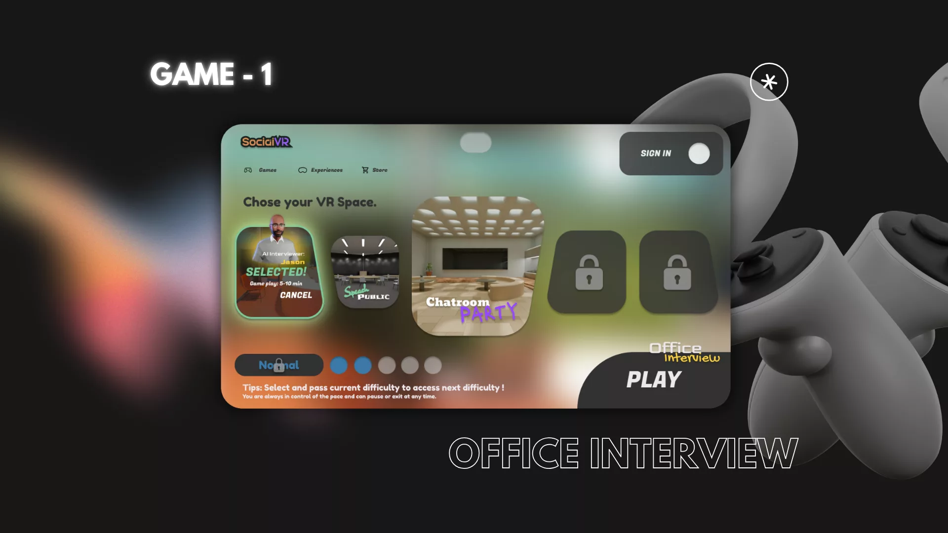 AI interviewer will generates specific topics and questions that the player needs to answer. After that player gets a score and personalized feedback from AI, to help them improve social skills based on conversation and answers.