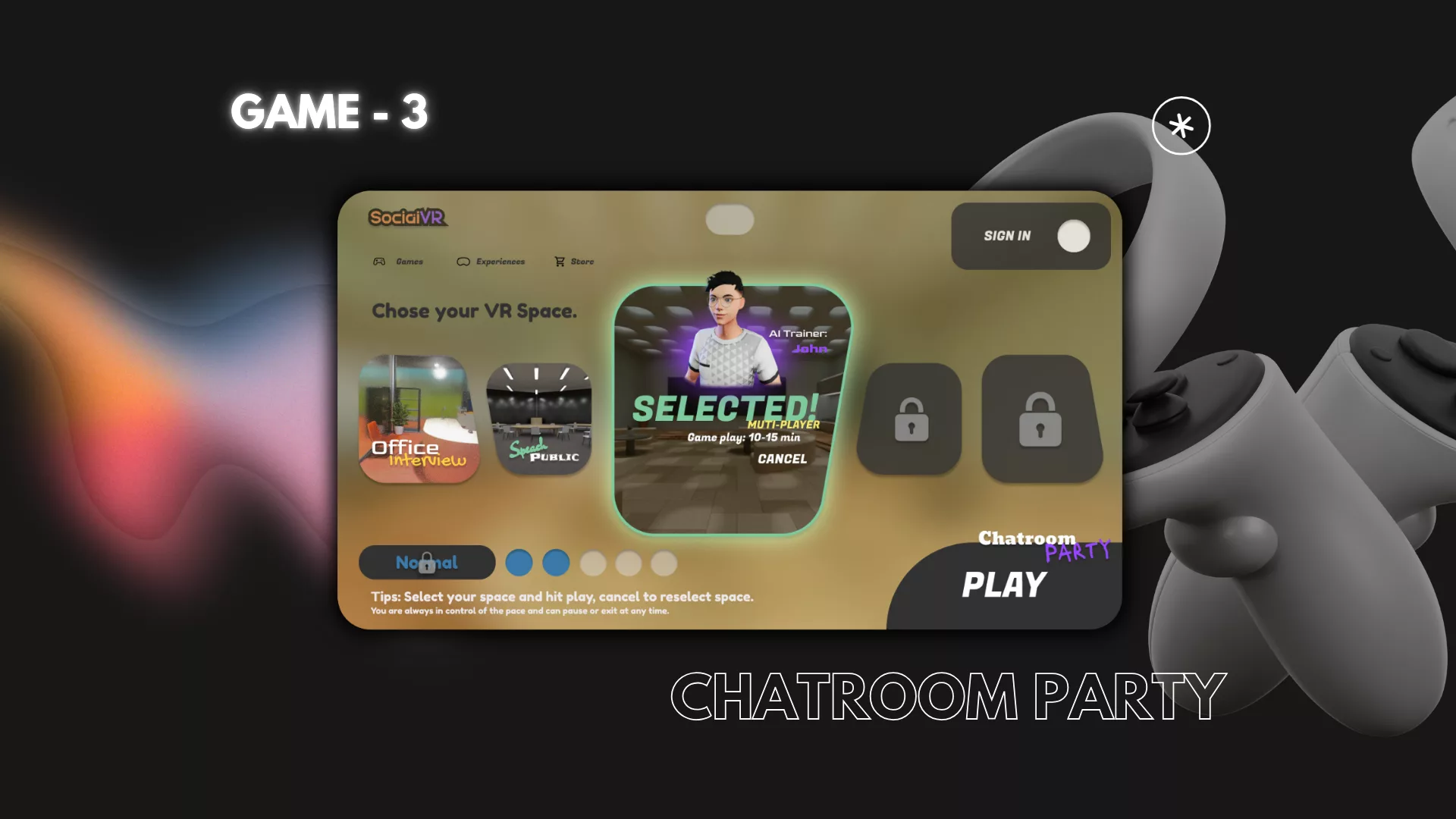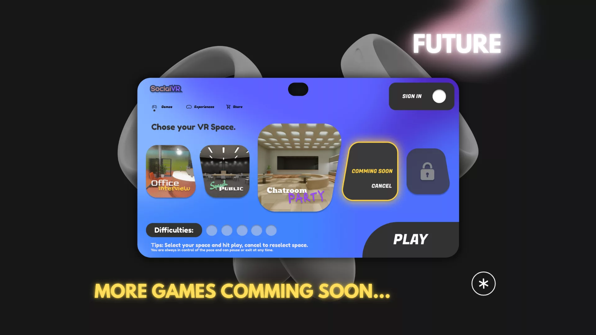 Individuals with social anxiety often experience an intense fear of negative evaluation or scrutiny in social or public situations. This anxiety is typically accompanied by noticeable physical and psychological symptoms, which can interfere with daily communication and relationships. Sociai VR is a game that integrates Virtual Reality and Artificial Intelligence designed to help people with social anxiety. By offering multiple immersive and interactive scenarios, users can practice social skills in a safe environment. The AI-powered non-player character interviewer generates various anxiety-inducing themes, such as job interviews, public speaking, or casual conversations. Based on the user’s performance, the AI interviewer provides personalized feedback and guidance, helping users gradually build confidence. By simulating challenging social situations, Sociai VR supports users in managing anxiety, improving communication skills, and developing resilience in real-life social environments.