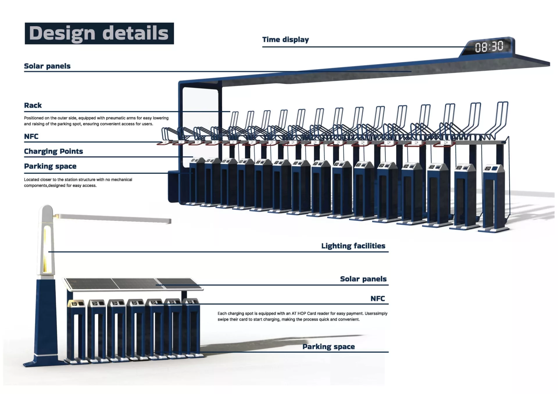 This project focuses on developing a sustainable network of solar-powered charging stations designed for both electric scooters and bicycles in Auckland’s high-traffic areas. These charging stations will be accessible to multiple shared mobility brands, encouraging eco-friendly transportation options and reducing the carbon footprint of urban commuting.