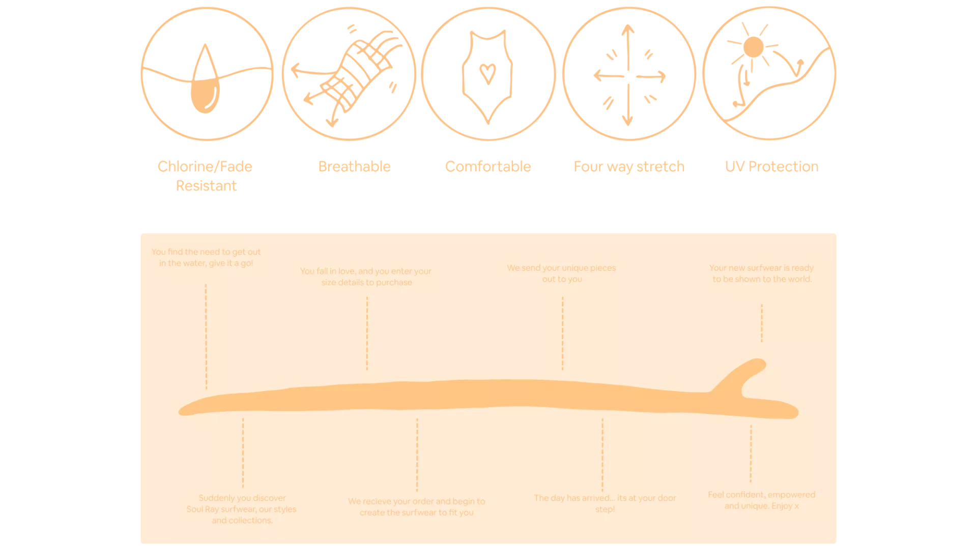 Soul Ray Surfwear strives to create an inclusive size range of surfwear to fit all women of shapes and sizes through customisation.