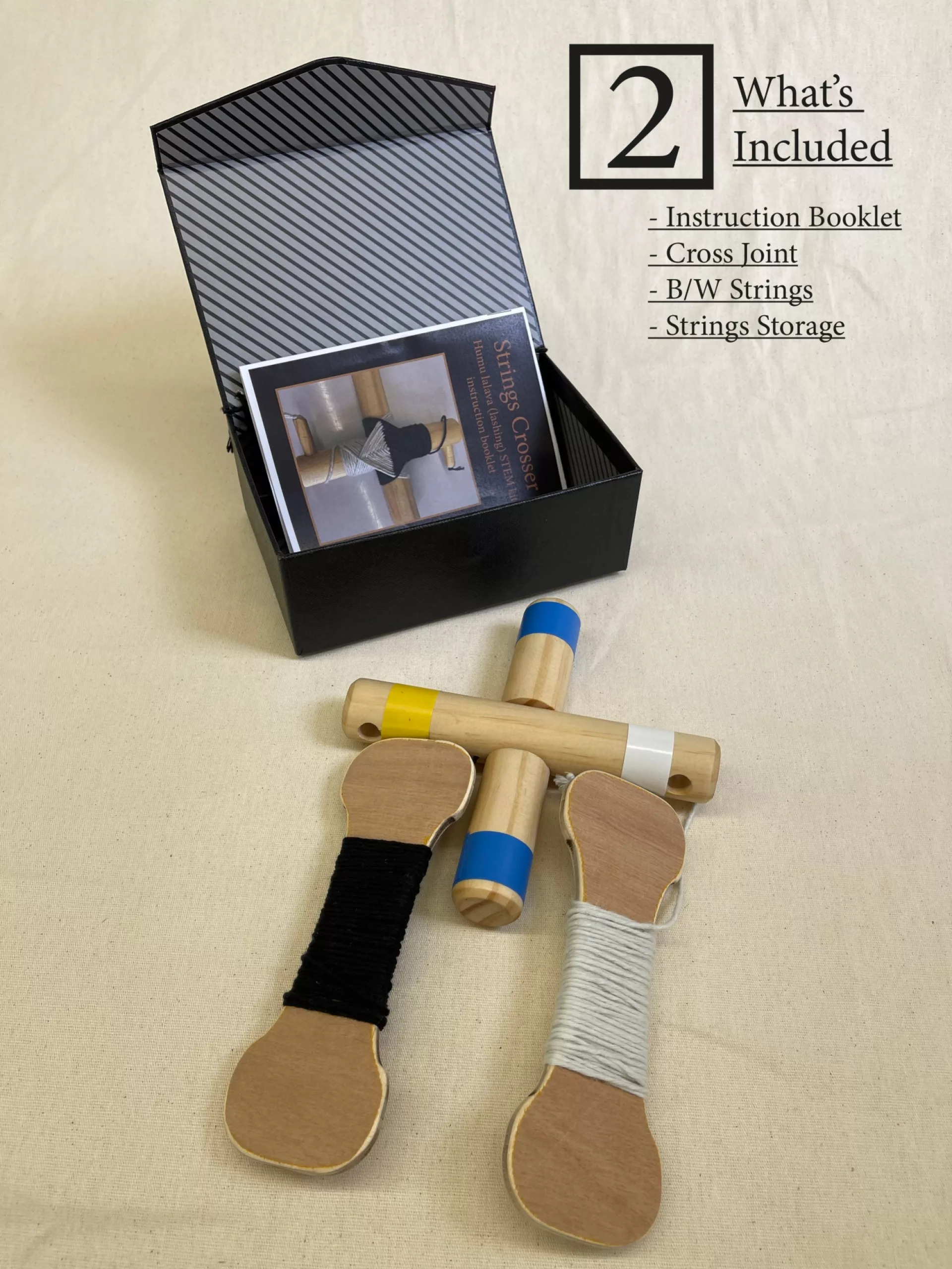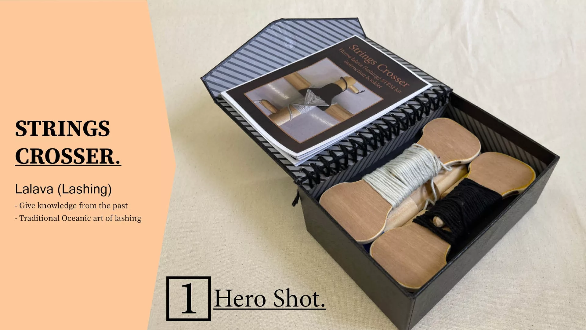 Strings Crosser is a STEM Kit designed to teach children aged 8-12 about traditional Samoan lalava (lashing) techniques. Strings Crosser is designed for a single user, takes 1 hour per session to complete, and requires multiple sessions to master the lalava technique.