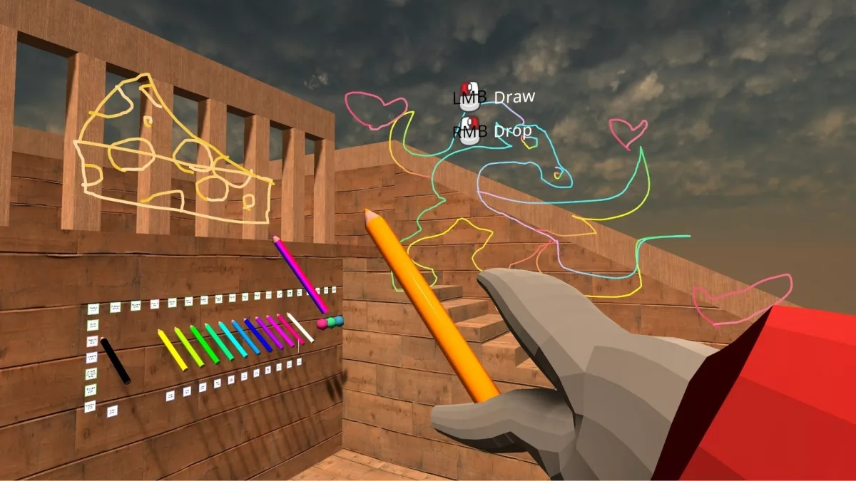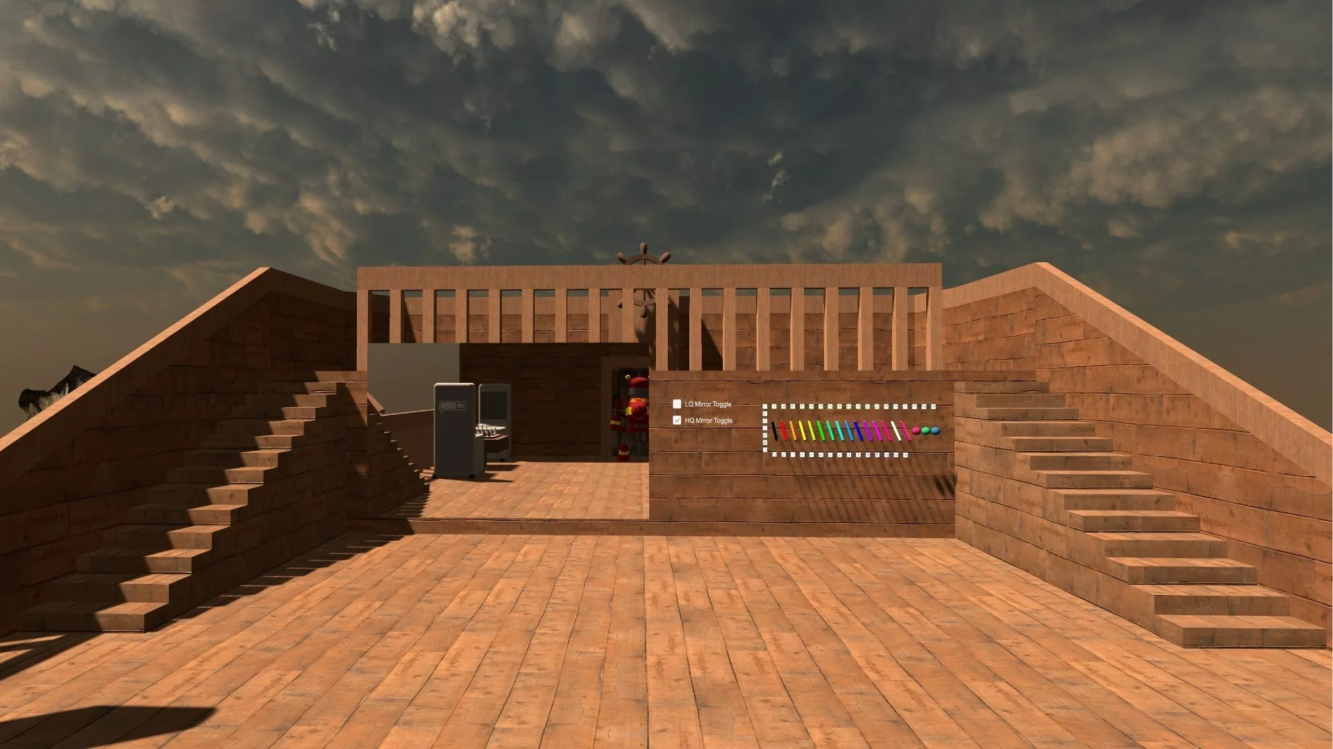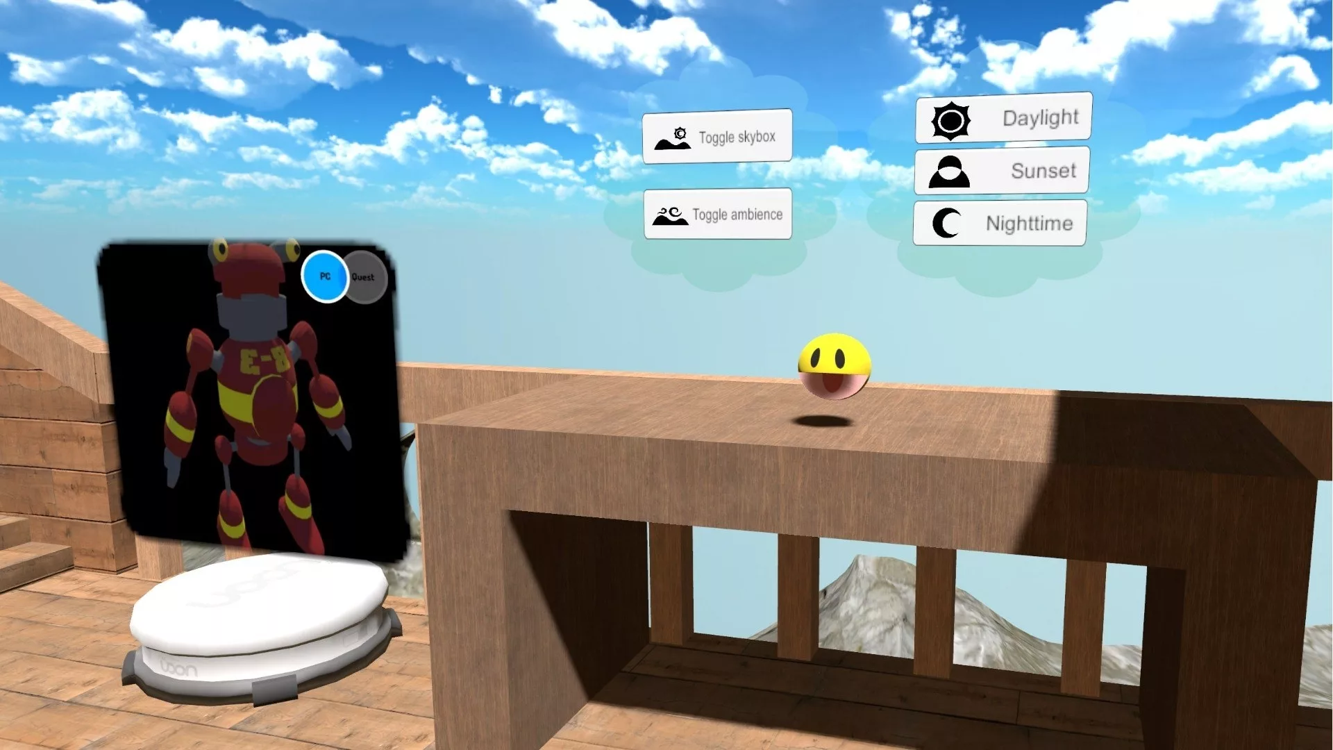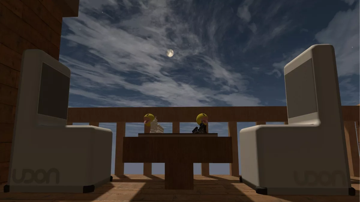With a Steam account created and VRChat installed, through a privately shared room entrance website link, patients can converse with their appointed therapist aboard The Dreamhull private instance. Aboard this wooden ship that floats above a bedrock of alpine mountains, its users can adjust the visible sky's background and ambience to their soothing needs through an onboard custom interface. Should they desire it, patients can interact with the local VR realm with a digital avatar - the Boilbot Body - specially designed for their introverted comforts. Therapists can also make use of the onboard behavioural activation tools - currently including a chess set and virtual drawing pens - to add to the patient recovery experience.