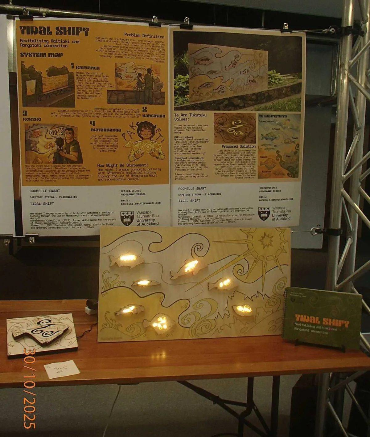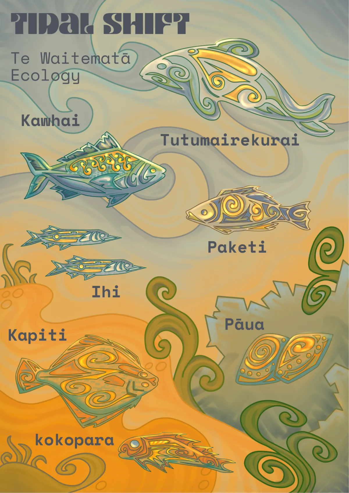Tidal Shift is an interchangeable installation piece that enhances learning through play. Subsequently, it also engages people of all ages to learn about our moana through the experience. Each design chosen represents an iconic endemic species with significant ties to Māori history. I believe Tidal Shift would be the perfect balance of Te Ara Tukutuku’s Values to regeneratively enhance the connection between tāngata and moana.