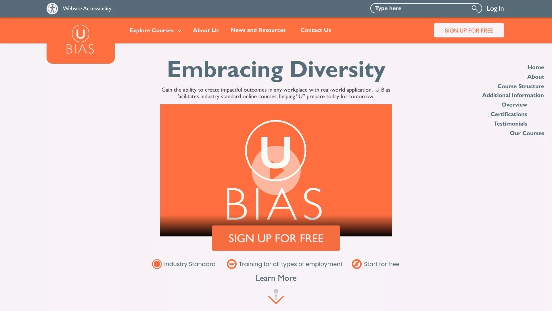 This statement uses social class as a guiding point for researching a broader problem. Within my peers, this research topic was one of the most challenging to solve within 12 weeks. Using IDEO's methodology, I created an online certification course that challenges how users perceive topics like diversity, equity and inclusion (DEI). Upon completion, users receive a certification that can be embedded into their CV, Cover Letters, and LinkedIn profiles. U-Bias aims to create an appraised future industry standard course that would become a requirement when applying for jobs in future workplaces.